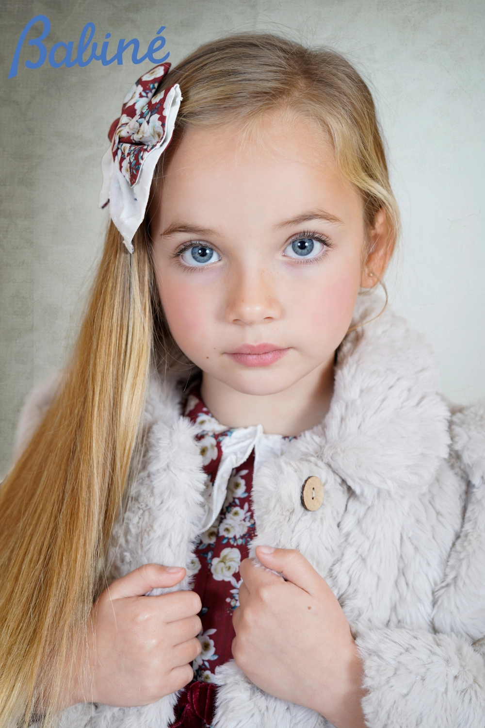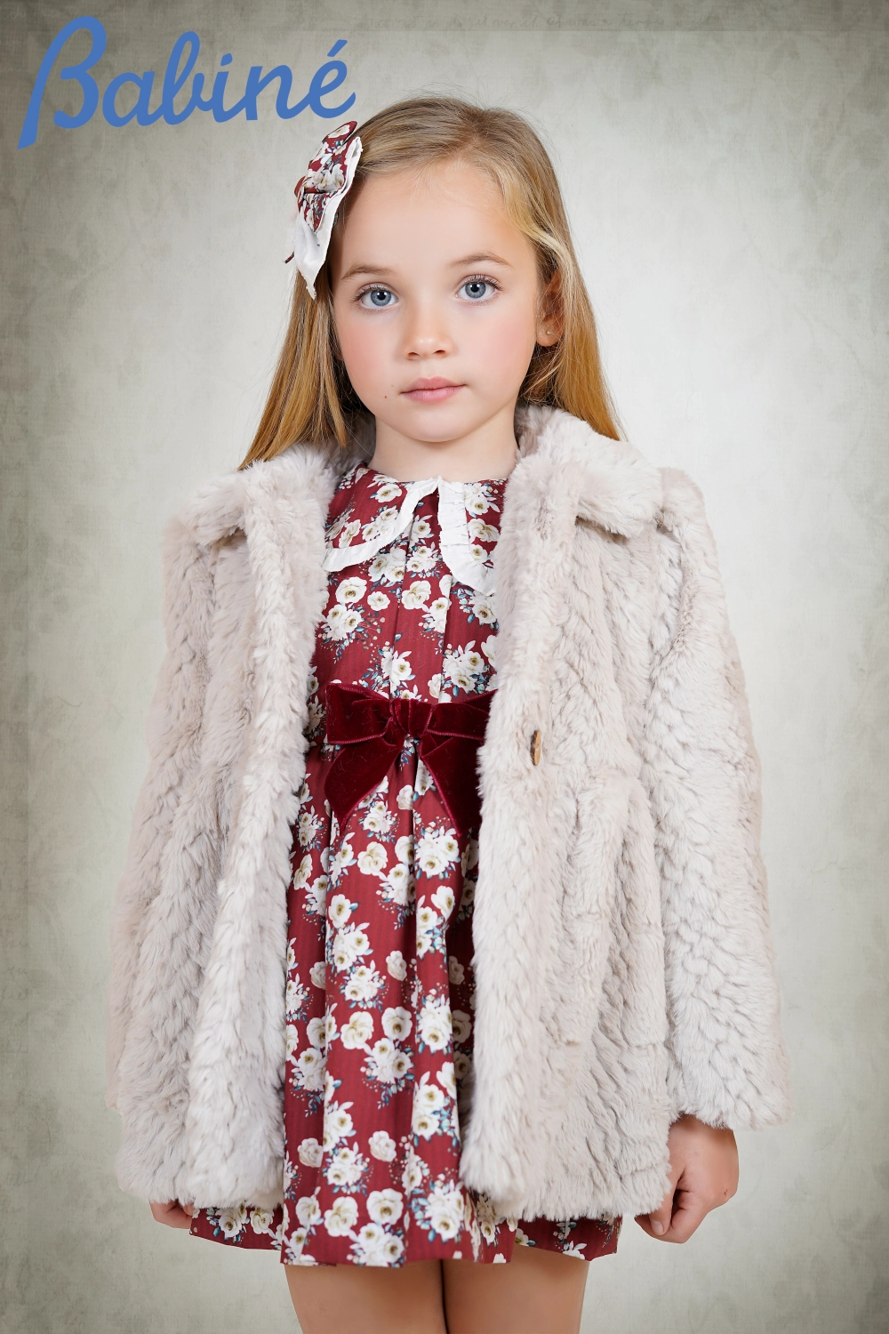 Una maravilla de abrigo de pelo de invierno en tono beige, súper elegante, de Babine moda infantil