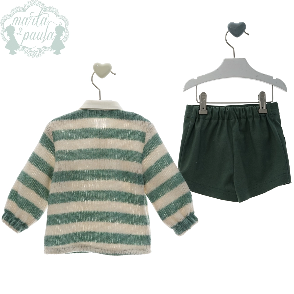 Conjunto de bebe a rayas con pantalón corto en verde oliva, familia "Sophia" de Marta y Paula moda infantil
