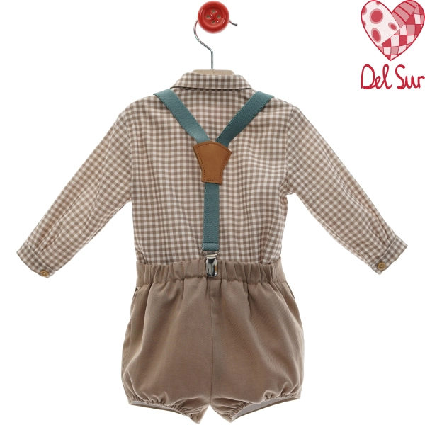 Conjunto bebe de tirantes en tonos marrones, una preciosidad colección "Purpurina" de Del Sur