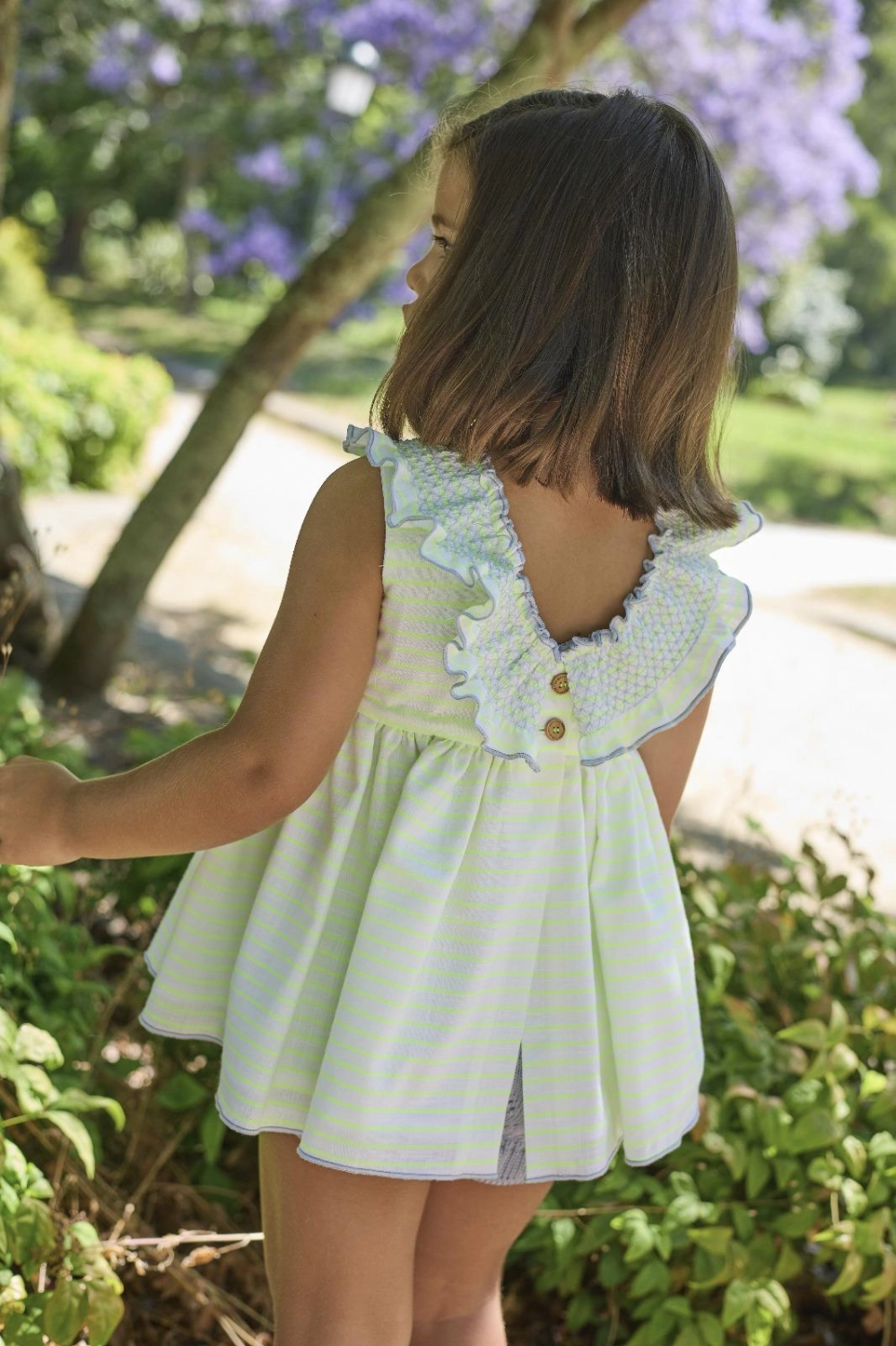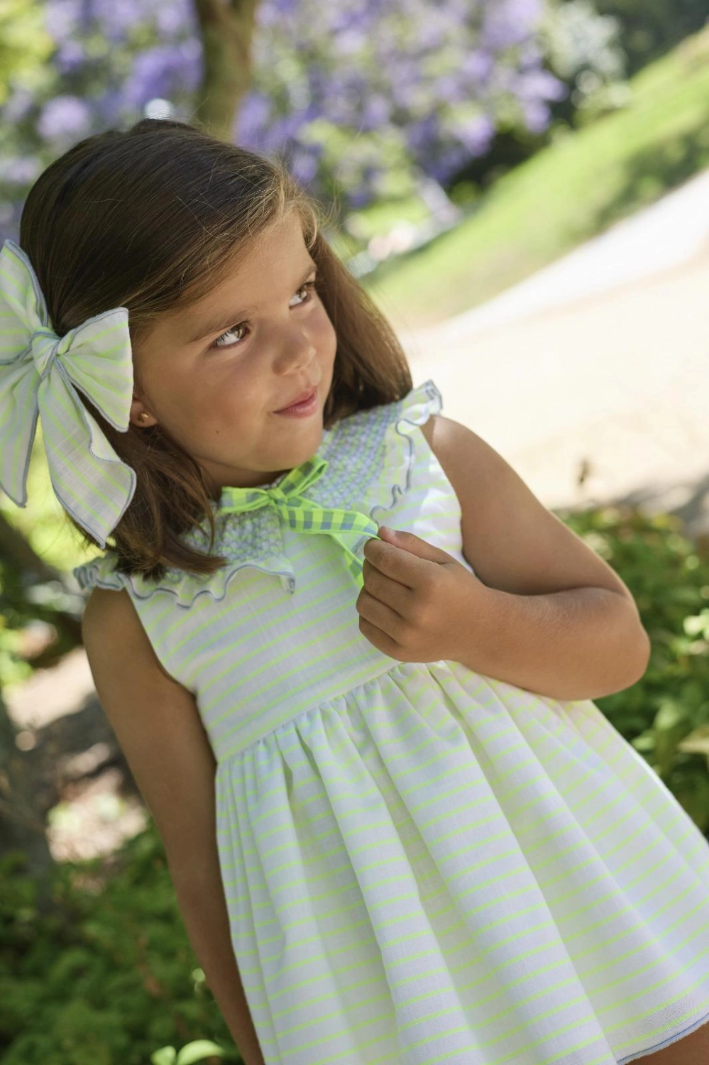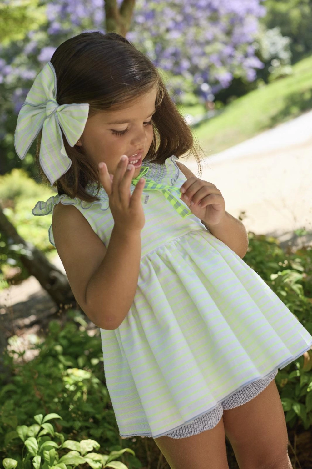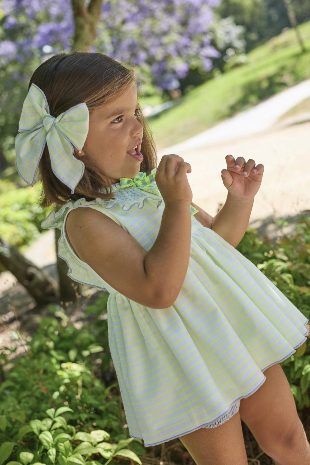 Conjunto jesusito y braguita "Pescardinos", a rayas fluor, de La Martinica