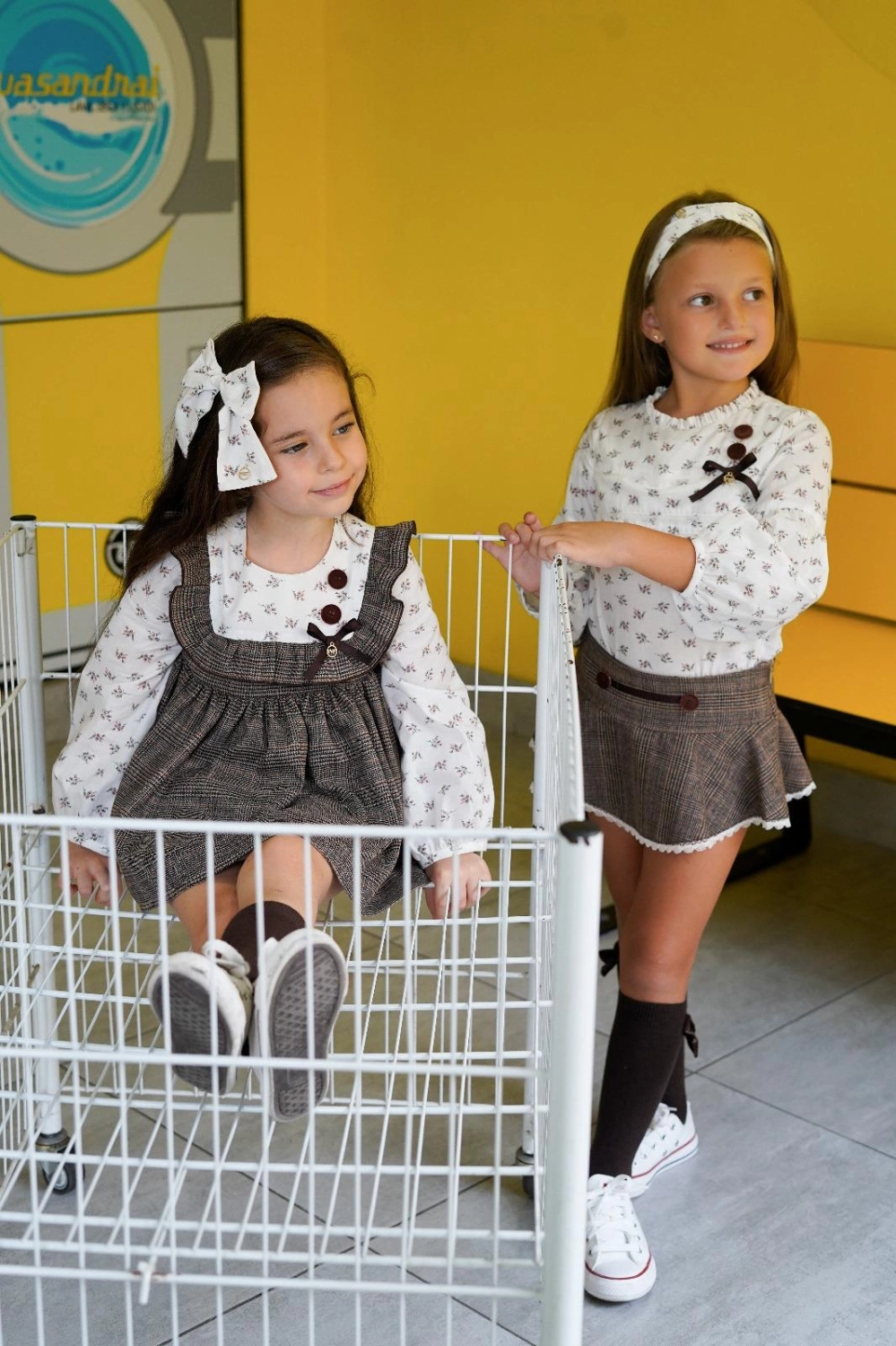 Jesusito de niña 2 piezas en tonos marrones y estampado floral, colección "Diana" de Noma Fernandez
