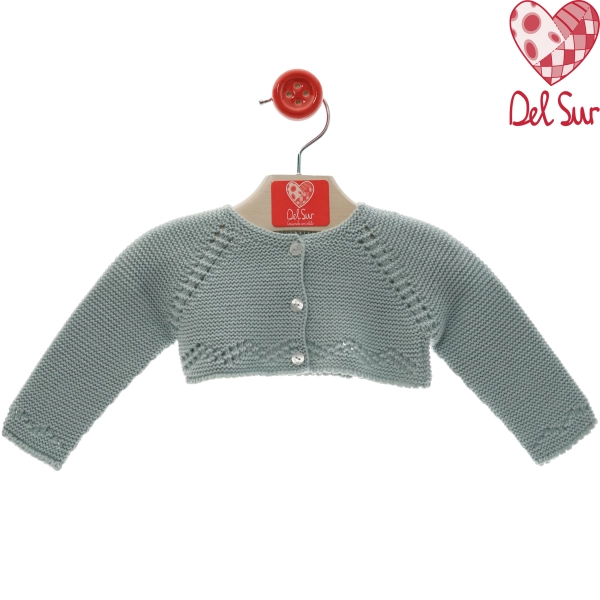 Rebeca de bebe corta otoñal en color burdeos, de Del Sur