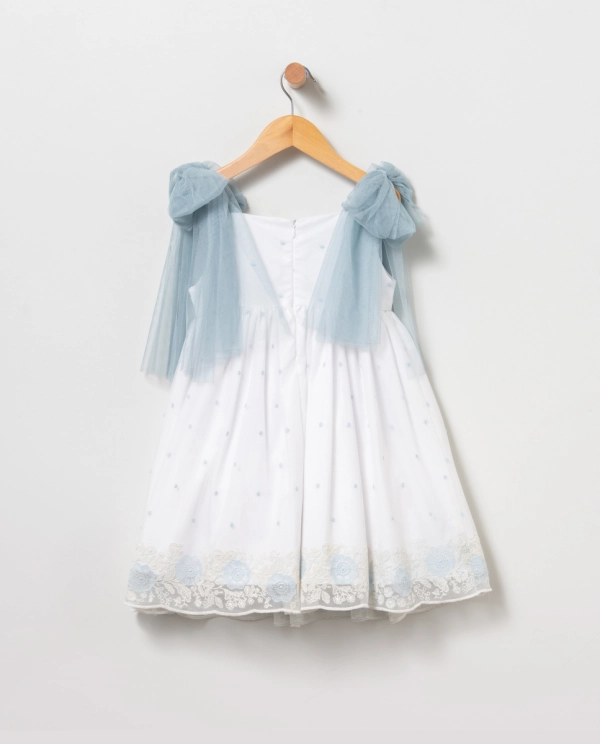 Vestido de ceremonia azul cielo a topitos, de Coco Acqua